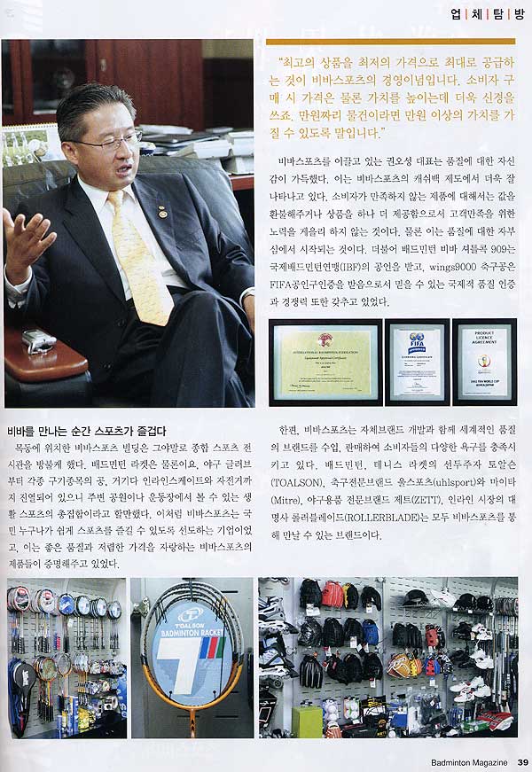 배드민턴메거진 10월호에 소개된 비바스포츠 권오성 대표 (2005.10)