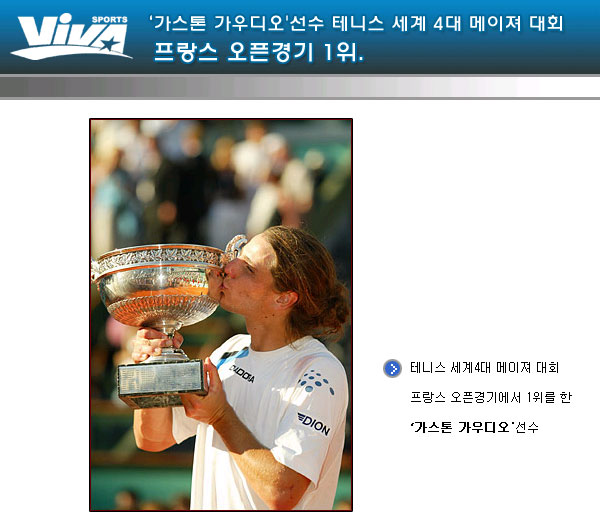 일본 TOALSON사 계약선수인 ‘가스톤 가우디오’ 선수 프랑스오픈경기 1위 (2004. 06. 09)