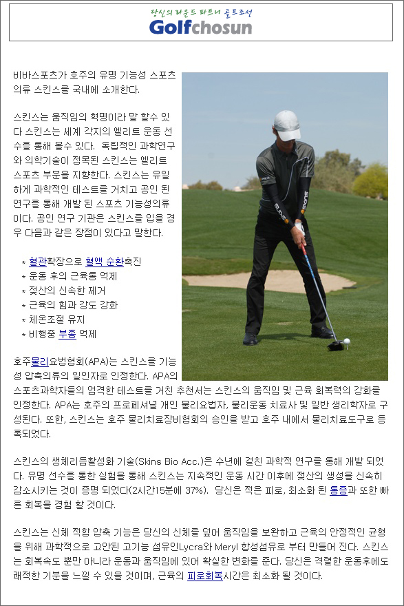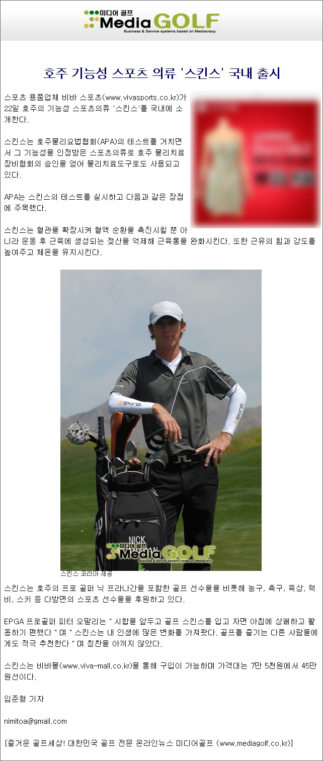 06월 스킨스 보도자료-“호주 기능성 스포츠 의류 국내출시” (2009.06)