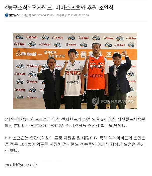 2011년 9월 비바스포츠 전자랜드와 후원 조인식 (2011.09)
