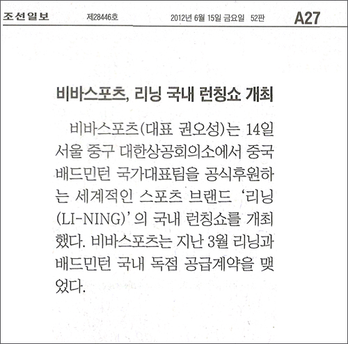 2012. 6. 15 조선일보 – 리닝 런칭쇼 보도자료 (2012.06)
