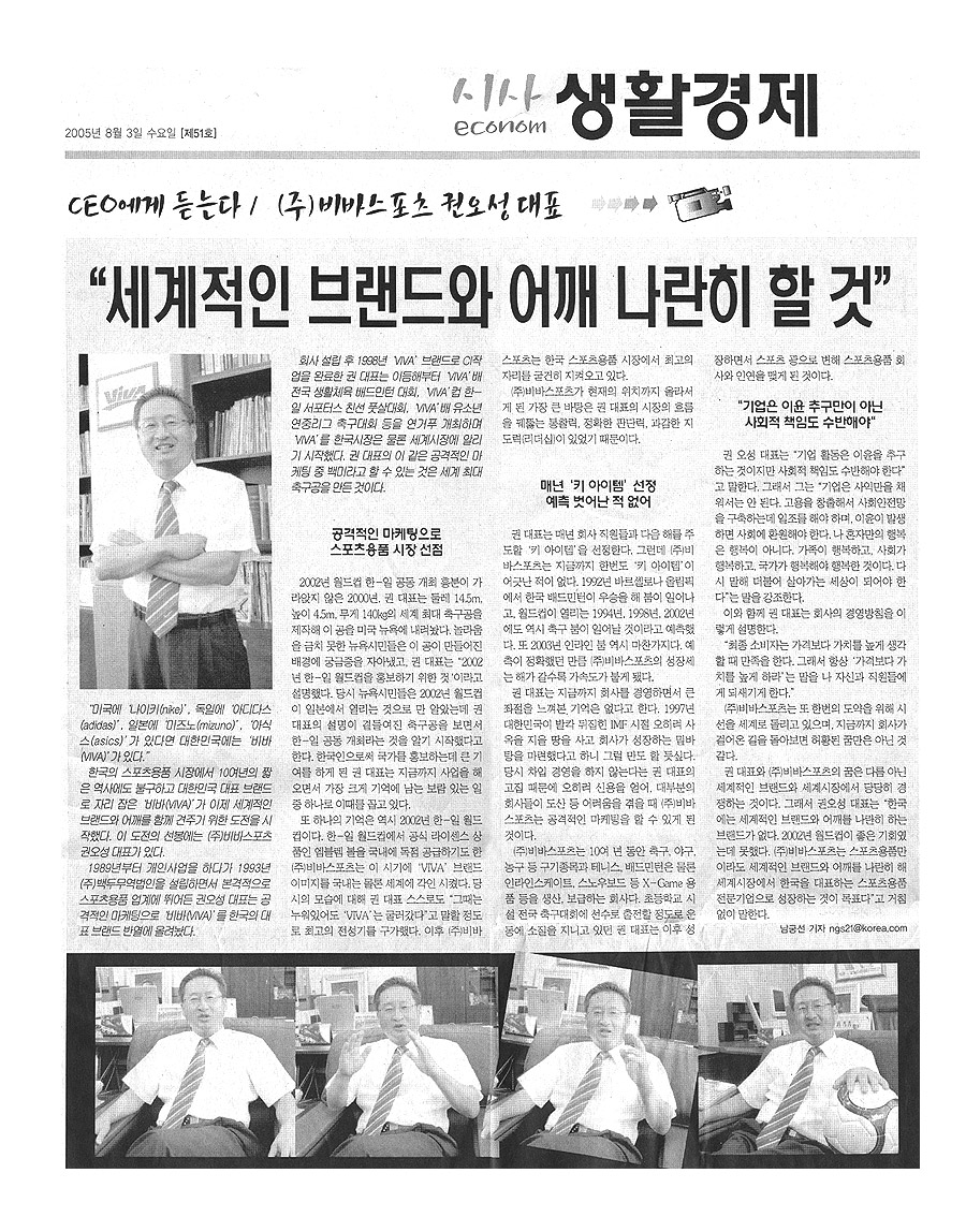 Best Eleven 5월 CEO탐방에 소개된 비바스포츠  권오성 대표 (2005.05.09)